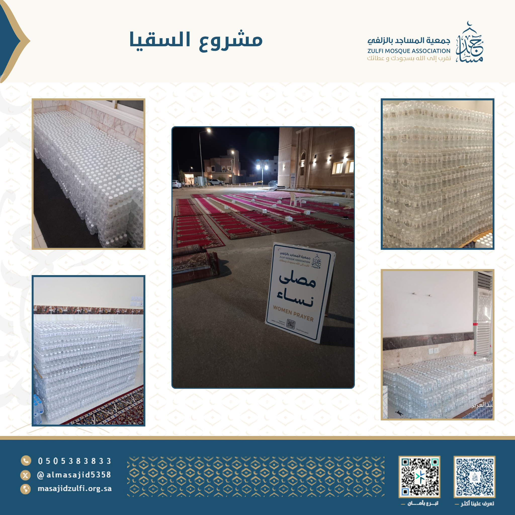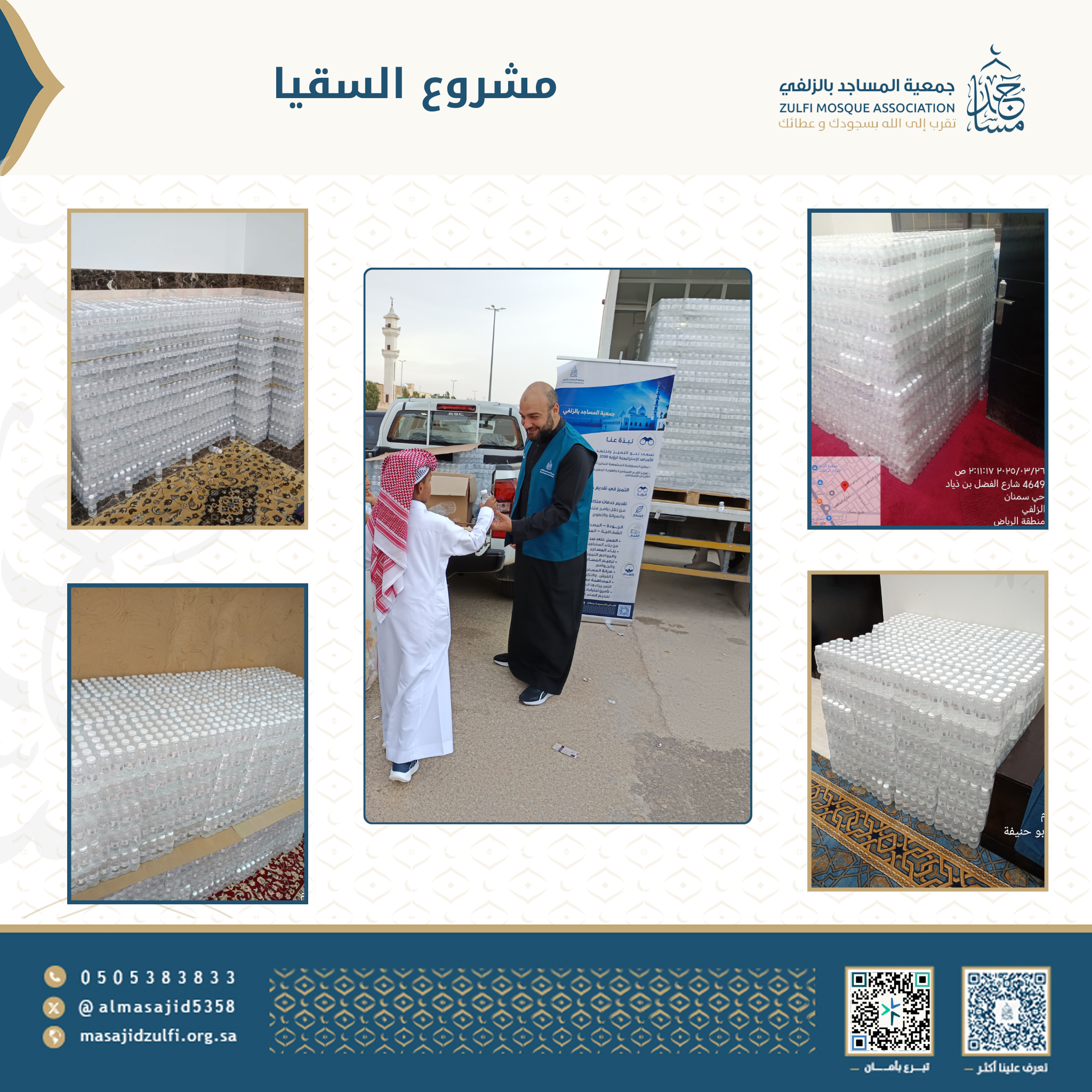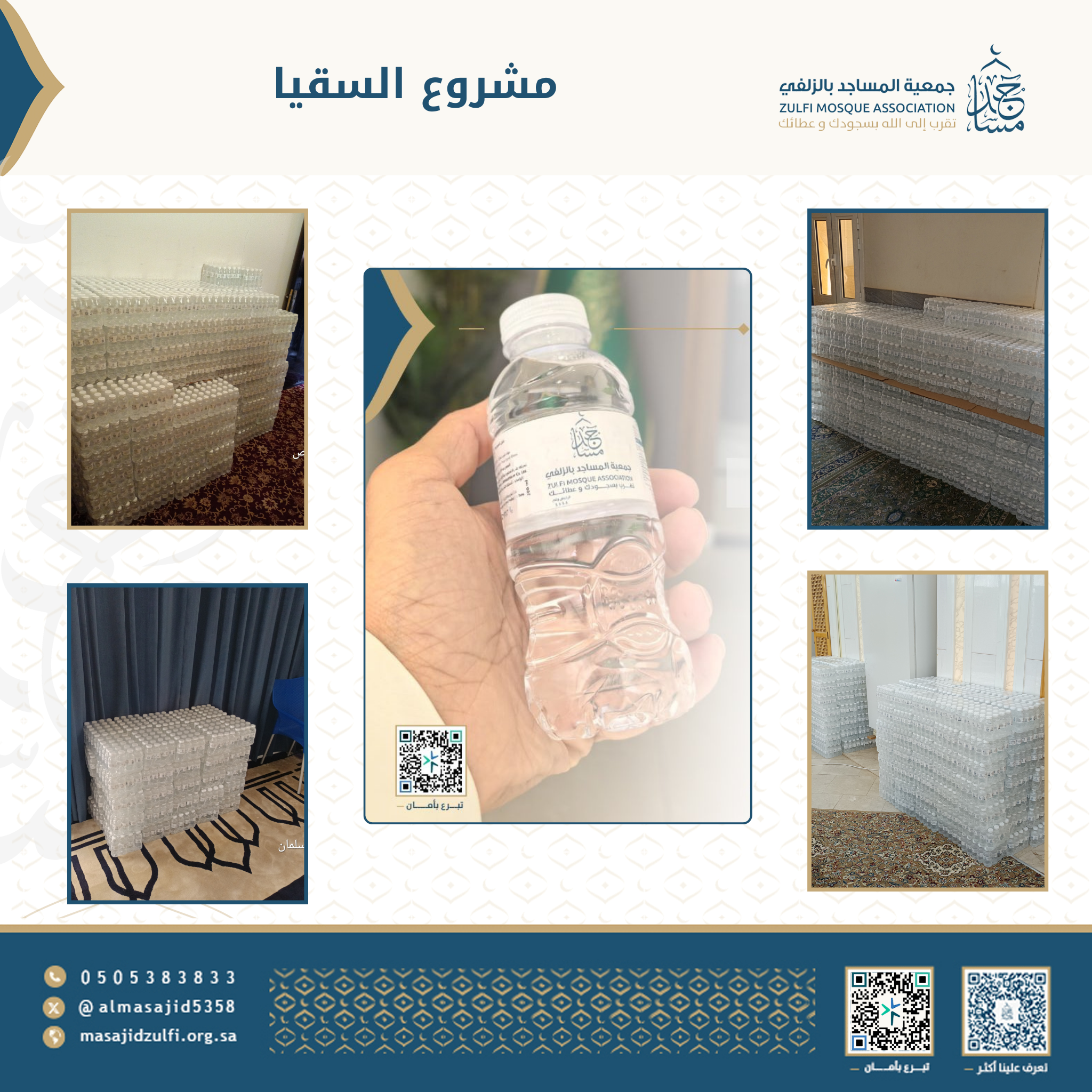 توفير مياه الشرب النظيفة و الآمنة للمصلين من خلال التركيب وصيانة بردات المياه وانظمة تزويد المياه بالمساجد.