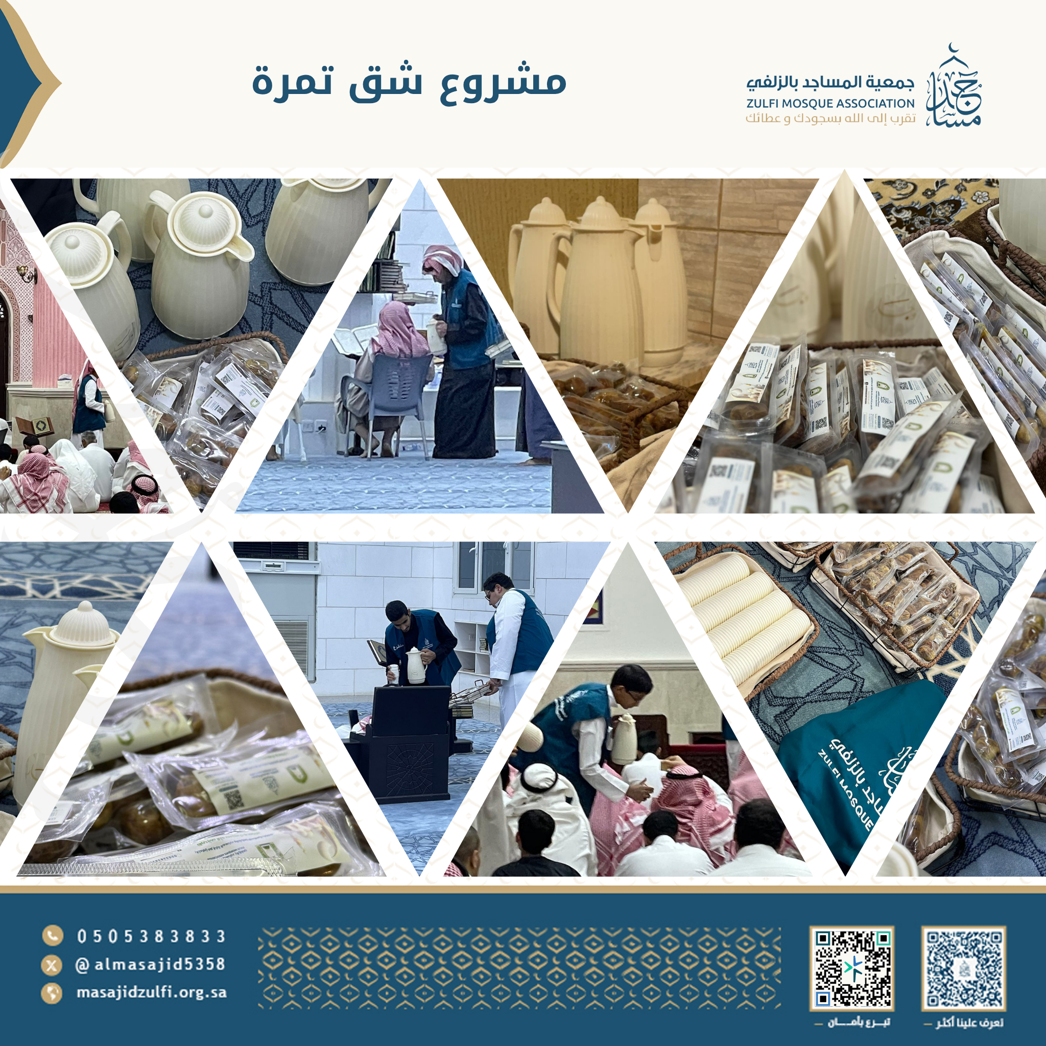 مشروع يهدف إلى العناية بالمصلين في المساجد خلال العشر الأواخر من رمضان بتقديم القهوة و الشاي والتمر قبل صلاة القيام.